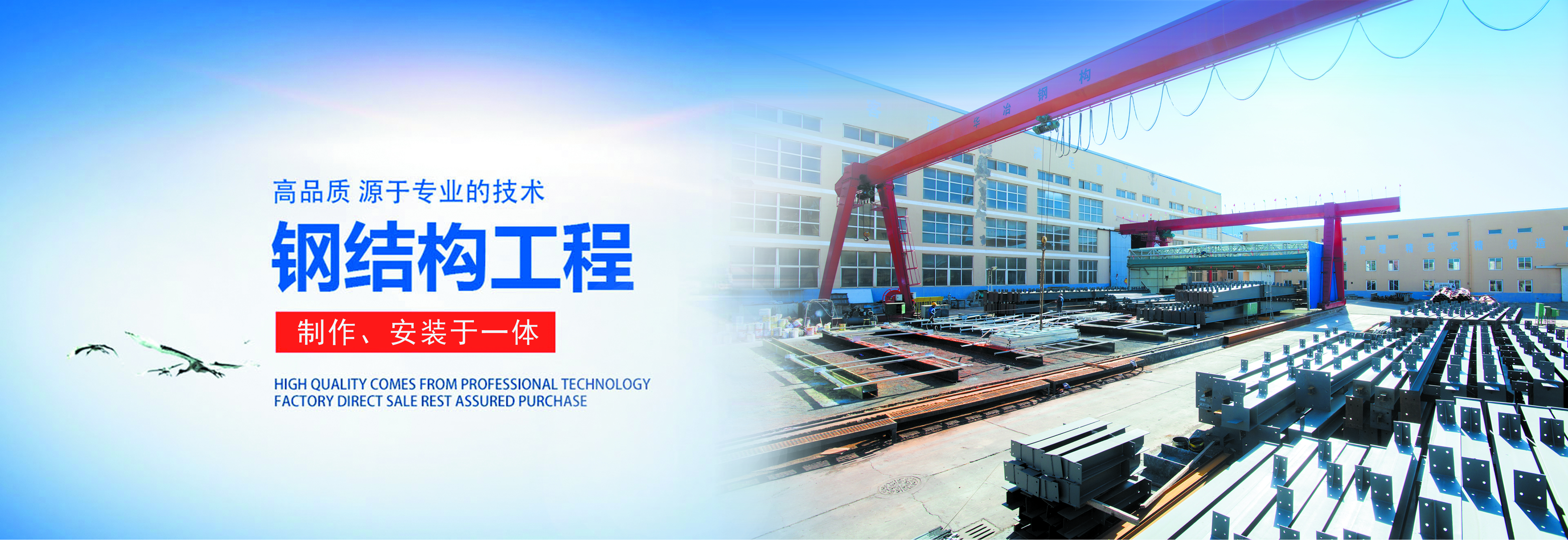 專業承建 高層鋼結構工程、門式鋼結構廠房、網架結構工程、夾層鋼結構建筑、球館類建筑、橋梁工程。